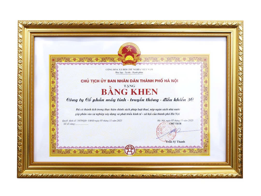Công ty 3C vinh dự nhận Bằng khen của Chủ tịch UBND TP Hà Nội tại Hội nghị Tuyên dương Người nộp thuế tiêu biểu Thủ đô năm 2024. Trong bối cảnh kinh tế nhiều biến động, 3C vẫn duy trì tăng trưởng, đồng thời chấp hành nghiêm túc nghĩa vụ thuế và đóng góp tích cực cho ngân sách Nhà nước. Thời gian tới, Công ty 3C tiếp tục phát triển bền vững, nâng cao hiệu quả kinh doanh và gia tăng đóng góp cho sự phát triển chung của đất nước.